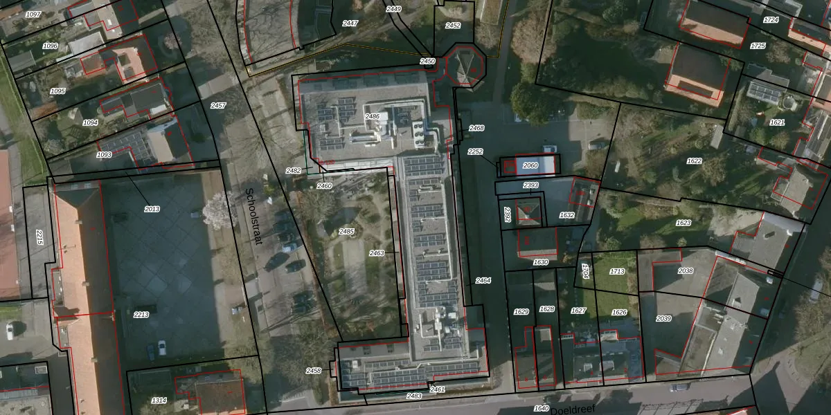 Het perceel waarop Schoolstraat 12 staat heeft een oppervlakte van 2021 m². Dit is een zeer groot perceel. De perceeloppervlakte wordt geregistreerd door het Kadaster. Gedetailleerde informatie over de maten van dit perceel kunt u vinden in het rapport Kadastrale kaart met maatvoering van Schoolstraat 12.