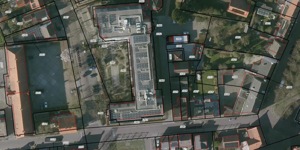 Het perceel waarop Schoolstraat 30 staat heeft een oppervlakte van 2021 m². Dit is een zeer groot perceel. De perceeloppervlakte wordt geregistreerd door het Kadaster. Gedetailleerde informatie over de maten van dit perceel kunt u vinden in het rapport Kadastrale kaart met maatvoering van Schoolstraat 30.