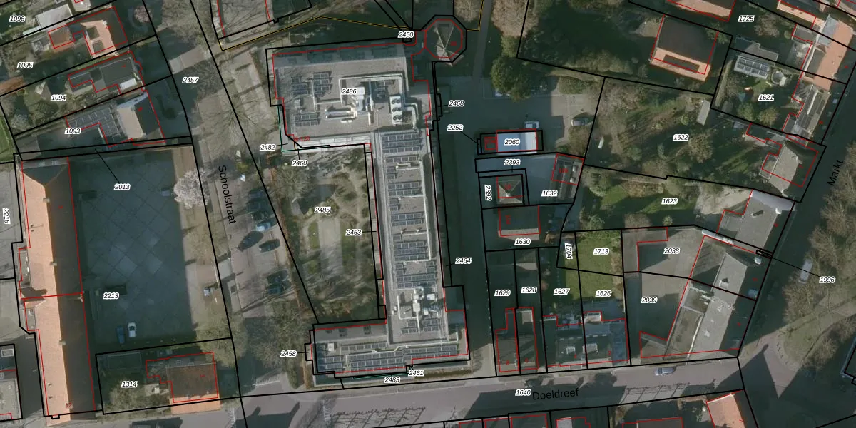 Het perceel waarop Schoolstraat 68 staat heeft een oppervlakte van 2021 m². Dit is een zeer groot perceel. De perceeloppervlakte wordt geregistreerd door het Kadaster. Gedetailleerde informatie over de maten van dit perceel kunt u vinden in het rapport Kadastrale kaart met maatvoering van Schoolstraat 68.