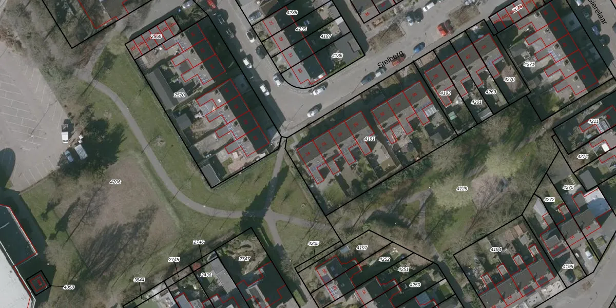 Het perceel waarop Stelberg 24 staat heeft een oppervlakte van 1410 m². Dit is een zeer groot perceel. De perceeloppervlakte wordt geregistreerd door het Kadaster. Gedetailleerde informatie over de maten van dit perceel kunt u vinden in het rapport Kadastrale kaart met maatvoering van Stelberg 24.