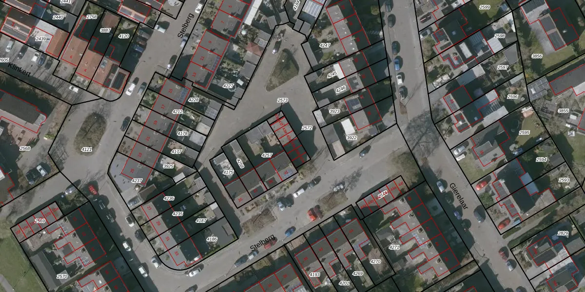 Stelberg 43-c is gelegen op kadastraal perceel WOU00E2572. Deze kadastrale aanduiding is uniek en wordt gebruikt door het Kadaster om eigendomsrechten en andere zakelijke rechten vast te leggen. Het perceel maakt onderdeel uit van de kadastrale gemeente Wouw.