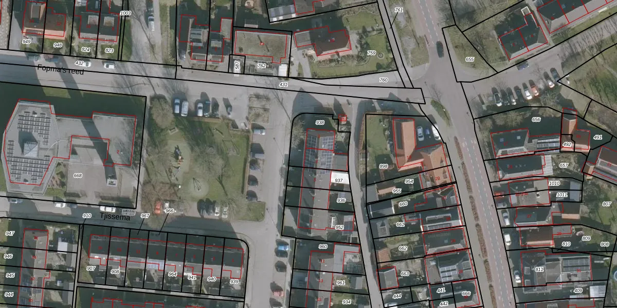 Het adres is gelegen op perceel 938 in de sectie A en de kadastrale gemeente Wirdum. De kadastrale aanduiding is aldus WDM00-A-938. Het perceel is kleiner dan gemiddeld in Wirdum. Het perceel is 309 m² groot, terwijl het gemiddelde ligt op 8279,66 m². Het kleinste perceel in de kadastrale gemeente is 0 m² groot. De grootste perceeloppervlakte is 47,0 ha. Er zijn 2 adressen aanwezig op het perceel. In de Basisregistratie Kadaster (BRK) werden de grenzen van het perceel geregistreerd op 09-04-2008.