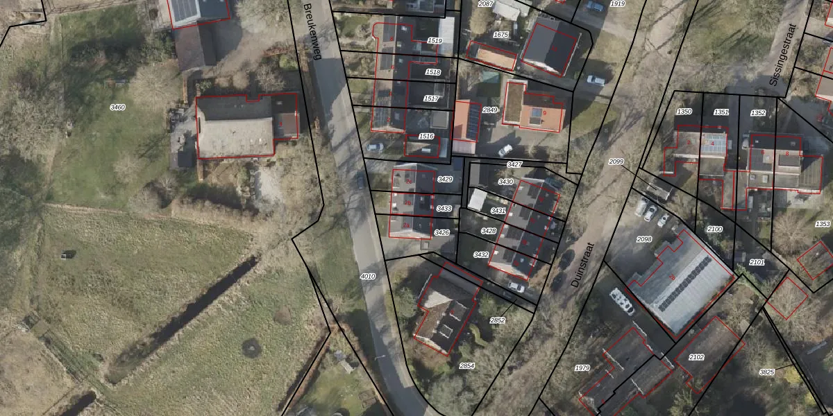 Gebruik de zoekbalk of klik op een perceel voor informatie over de adressen binnen dit perceel.