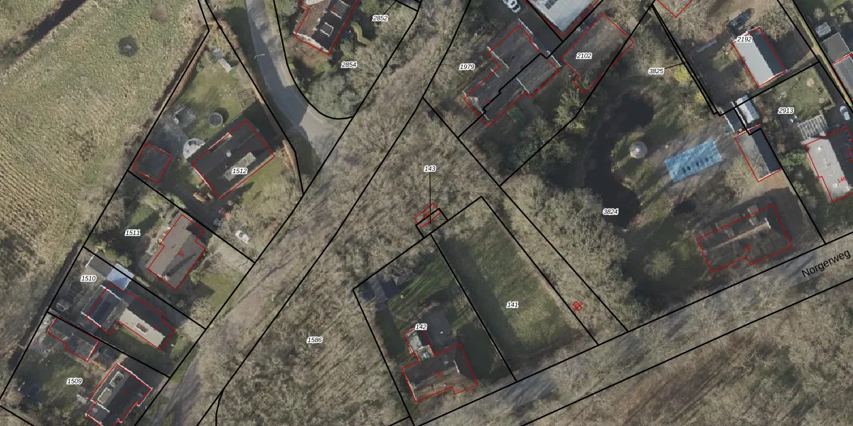 Het perceel waarop het adres ligt is VRI00-T-1586. De afkorting 'VRI00' staat voor kadastrale gemeente Vries. De gemiddelde perceelgrootte in Vries is 8868,5 m². Dit perceel is kleiner: de perceeloppervlakte bedraagt 2431 m². Het kleinste perceel in de kadastrale gemeente is 1 m² groot. De grootste perceeloppervlakte is 53,3 ha. Op het perceel liggen in totaal 2 adressen. In de Basisregistratie Kadaster (BRK) werden de grenzen van het perceel geregistreerd op 12-11-2004.