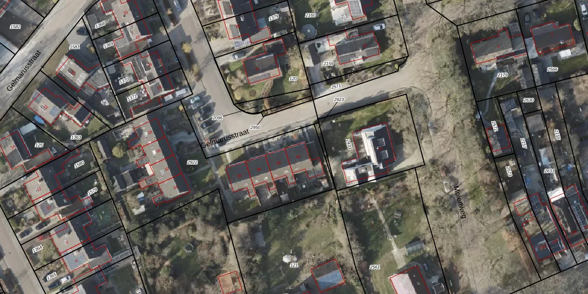 Het perceel waarop Gelmarusstraat 42 staat heeft een oppervlakte van 2045 m². Dit is een zeer groot perceel. De perceeloppervlakte wordt geregistreerd door het Kadaster. Gedetailleerde informatie over de maten van dit perceel kunt u vinden in het rapport Kadastrale kaart met maatvoering van Gelmarusstraat 42.