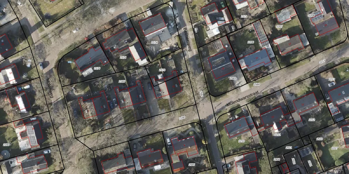 Het perceel waarop Molendwarsstraat 11 staat heeft een oppervlakte van 1885 m². Dit is een zeer groot perceel. De perceeloppervlakte wordt geregistreerd door het Kadaster. Gedetailleerde informatie over de maten van dit perceel kunt u vinden in het rapport Kadastrale kaart met maatvoering van Molendwarsstraat 11.