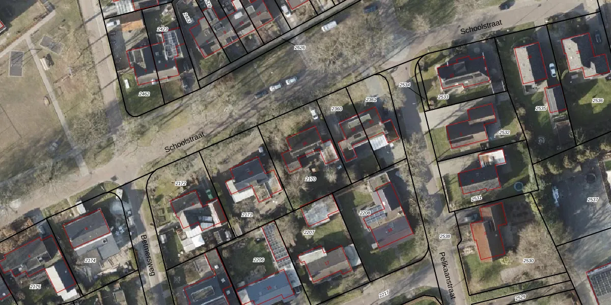 Gebruik de zoekbalk of klik op een perceel voor informatie over de adressen binnen dit perceel.