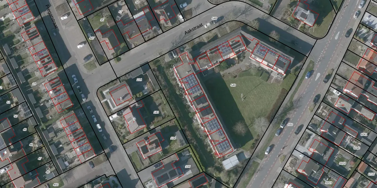 Het perceel waarop Aakstraat 20 staat heeft een oppervlakte van 4182 m². Dit is een zeer groot perceel. De perceeloppervlakte wordt geregistreerd door het Kadaster. Gedetailleerde informatie over de maten van dit perceel kunt u vinden in het rapport Kadastrale kaart met maatvoering van Aakstraat 20.