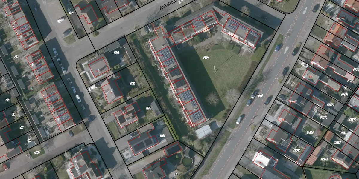 Aakstraat 24 is gelegen op kadastraal perceel RMW00U549. Deze kadastrale aanduiding is uniek en wordt gebruikt door het Kadaster om eigendomsrechten en andere zakelijke rechten vast te leggen. Het perceel maakt onderdeel uit van de kadastrale gemeente Reimerswaal.