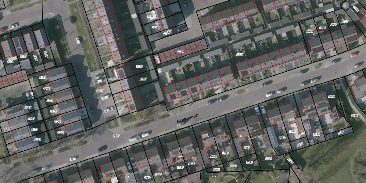 Het perceel waarop Azalealaan 59 staat heeft een oppervlakte van 4119 m². Dit is een zeer groot perceel. De perceeloppervlakte wordt geregistreerd door het Kadaster. Gedetailleerde informatie over de maten van dit perceel kunt u vinden in het rapport Kadastrale kaart met maatvoering van Azalealaan 59.