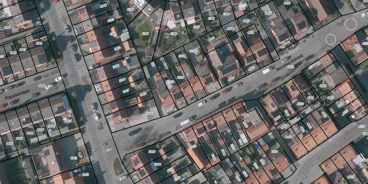 Het perceel waarop Bernhardstraat 25 staat heeft een oppervlakte van 181 m². Dit is een middelgroot perceel. De perceeloppervlakte wordt geregistreerd door het Kadaster. Gedetailleerde informatie over de maten van dit perceel kunt u vinden in het rapport Kadastrale kaart met maatvoering van Bernhardstraat 25.