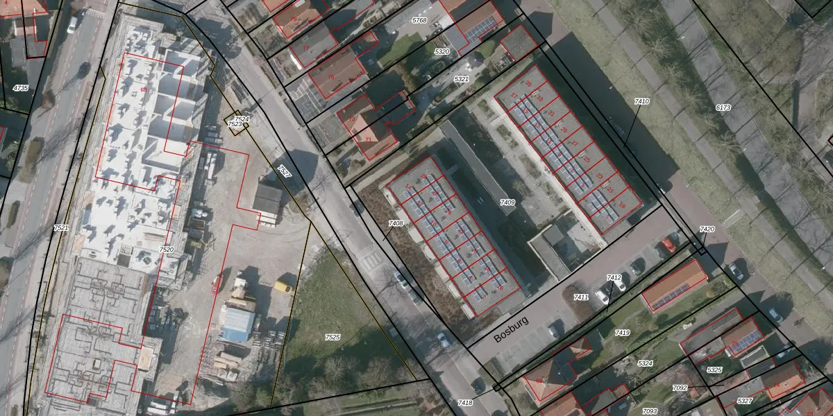 Het perceel waarop Bosburg 12 staat heeft een oppervlakte van 2831 m². Dit is een zeer groot perceel. De perceeloppervlakte wordt geregistreerd door het Kadaster. Gedetailleerde informatie over de maten van dit perceel kunt u vinden in het rapport Kadastrale kaart met maatvoering van Bosburg 12.