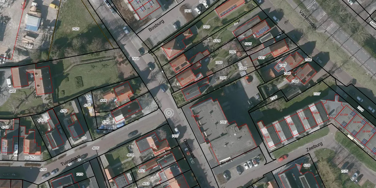 Damstraat 63 is gelegen op kadastraal perceel YSK00G7095. Deze kadastrale aanduiding is uniek en wordt gebruikt door het Kadaster om eigendomsrechten en andere zakelijke rechten vast te leggen. Het perceel maakt onderdeel uit van de kadastrale gemeente Yerseke.