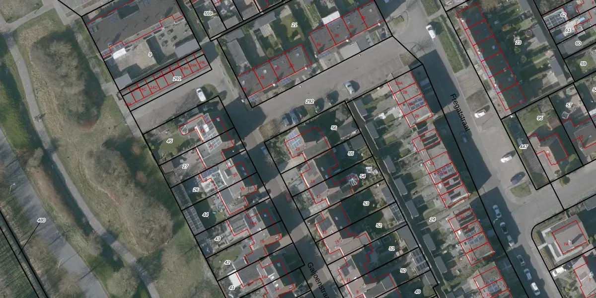Het perceel waarop Galjoenstraat 21 staat heeft een oppervlakte van 367 m². Dit is een groot perceel. De perceeloppervlakte wordt geregistreerd door het Kadaster. Gedetailleerde informatie over de maten van dit perceel kunt u vinden in het rapport Kadastrale kaart met maatvoering van Galjoenstraat 21.