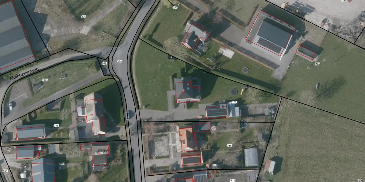 Het perceel waarop het adres ligt is RMW00-U-316. De afkorting 'RMW00' staat voor kadastrale gemeente Reimerswaal. De gemiddelde perceelgrootte in Reimerswaal is 2,0 ha. Dit perceel is kleiner: de perceeloppervlakte bedraagt 2280 m². Het grootste perceel in de kadastrale gemeente is 11,11 km². Het kleinste perceel heeft een oppervlakte van 1 m². Er zijn geen andere adressen aanwezig op het perceel. De laatste wijziging in het de Basisregistratie Kadaster (BRK) was op 11-09-2000.