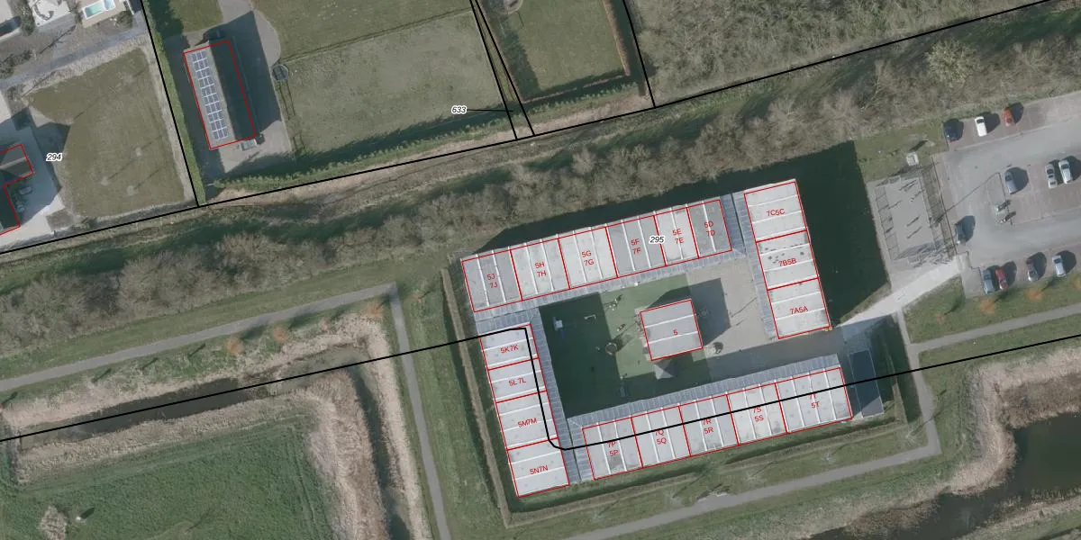 Het perceel waarop het adres ligt is RMW00-V-295. De afkorting 'RMW00' staat voor kadastrale gemeente Reimerswaal. Het perceel is 1,3 ha groot. Dat is kleiner dan de gemiddelde perceeloppervlakte in Reimerswaal, dat op 2,0 ha ligt. Het grootste perceel in de kadastrale gemeente is 11,11 km². Het kleinste perceel heeft een oppervlakte van 1 m². Op het perceel zijn 19 adressen aanwezig. In de Basisregistratie Kadaster (BRK) werden de grenzen van het perceel geregistreerd op 02-05-2014.