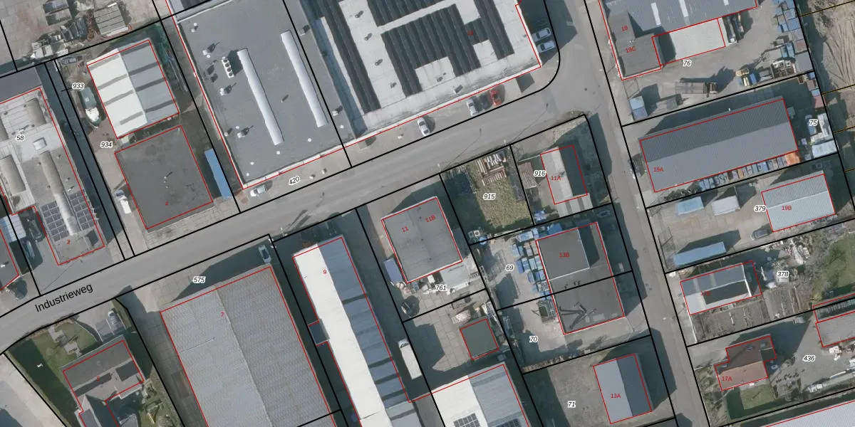 Industrieweg 11-B is gelegen op kadastraal perceel RMW00Y761. Deze kadastrale aanduiding is uniek en wordt gebruikt door het Kadaster om eigendomsrechten en andere zakelijke rechten vast te leggen. Het perceel maakt onderdeel uit van de kadastrale gemeente Reimerswaal.