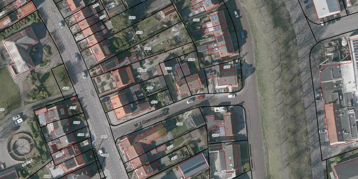 Het perceel waarop M.J.Goemanstraat 2 staat heeft een oppervlakte van 255 m². Dit is een middelgroot perceel. De perceeloppervlakte wordt geregistreerd door het Kadaster. Gedetailleerde informatie over de maten van dit perceel kunt u vinden in het rapport Kadastrale kaart met maatvoering van M.J.Goemanstraat 2.