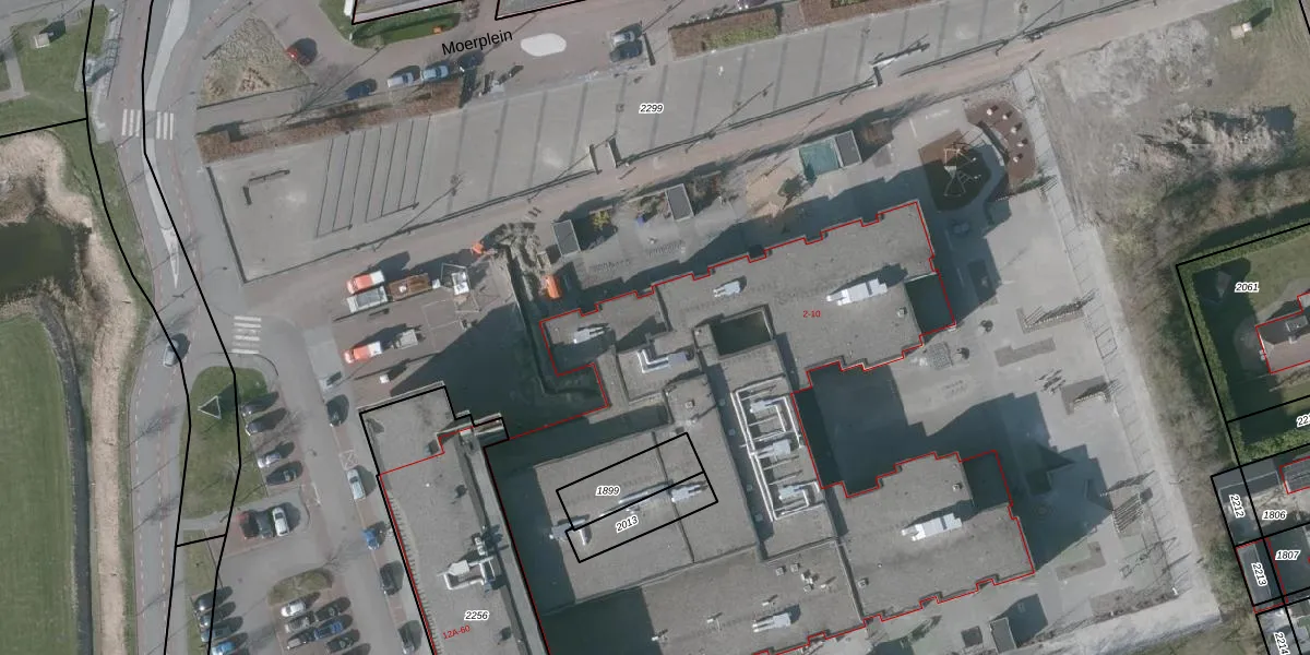Het perceel waarop Moerplein 6 staat heeft een oppervlakte van 3,9 ha. Dit is een zeer groot perceel. De perceeloppervlakte wordt geregistreerd door het Kadaster. Gedetailleerde informatie over de maten van dit perceel kunt u vinden in het rapport Kadastrale kaart met maatvoering van Moerplein 6.