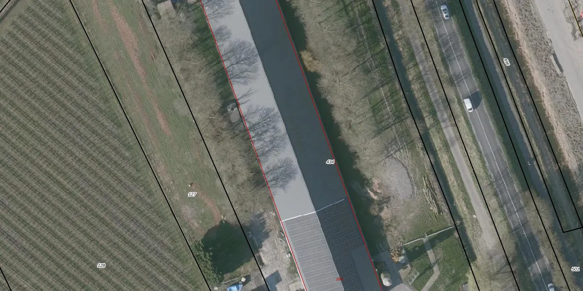 Het perceel waarop het adres ligt is RMW00-W-434. De afkorting 'RMW00' staat voor kadastrale gemeente Reimerswaal. Het perceel is kleiner dan gemiddeld in Reimerswaal. Het perceel is 1,1 ha groot, terwijl het gemiddelde ligt op 2,0 ha. Het kleinste perceel in de kadastrale gemeente is 1 m² groot. De grootste perceeloppervlakte is 11,11 km². Er zijn geen andere adressen aanwezig op het perceel. De huidige grenzen van het perceel zijn digitaal in de Basisregistratie Kadaster (BRK) geregistreerd op 06-12-2013.