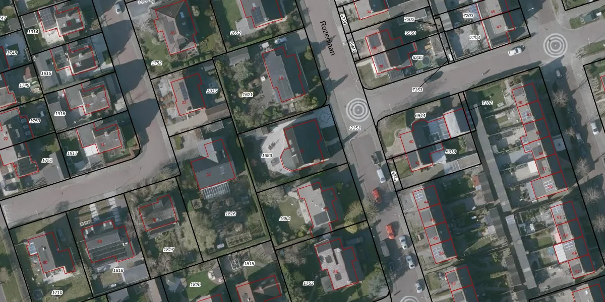 Gebruik de zoekbalk of klik op een perceel voor informatie over de adressen binnen dit perceel.