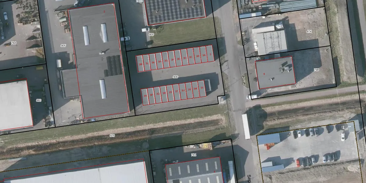 Het adres is gelegen op perceel 906 in de sectie Y en de kadastrale gemeente Reimerswaal. De kadastrale aanduiding is aldus RMW00-Y-906. De gemiddelde perceelgrootte in Reimerswaal is 2,0 ha. Dit perceel is kleiner: de perceeloppervlakte bedraagt 1755 m². Het kleinste perceel in de kadastrale gemeente is 1 m² groot. De grootste perceeloppervlakte is 11,11 km². Op het perceel liggen in totaal 22 adressen. De huidige grenzen van het perceel zijn digitaal in de Basisregistratie Kadaster (BRK) geregistreerd op 29-08-2024.