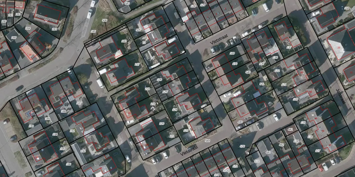 Gebruik de zoekbalk of klik op een perceel voor informatie over de adressen binnen dit perceel.