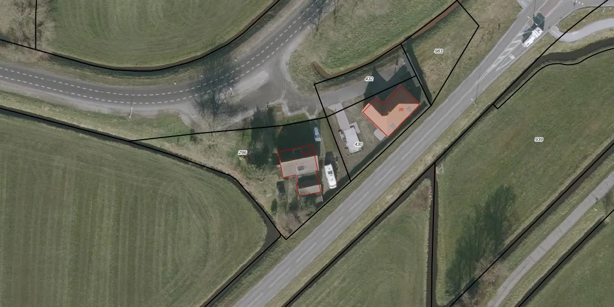 Het perceel waarop het adres ligt is WED00-C-296. De afkorting 'WED00' staat voor kadastrale gemeente Woudsend. Het perceel is kleiner dan gemiddeld in Woudsend. Het perceel is 1200 m² groot, terwijl het gemiddelde ligt op 1,3 ha. Het grootste perceel in de kadastrale gemeente is 1,93 km². Het kleinste perceel heeft een oppervlakte van 0 m². Er zijn 2 adressen aanwezig op het perceel. De laatste wijziging in het de Basisregistratie Kadaster (BRK) was op 29-05-2012.