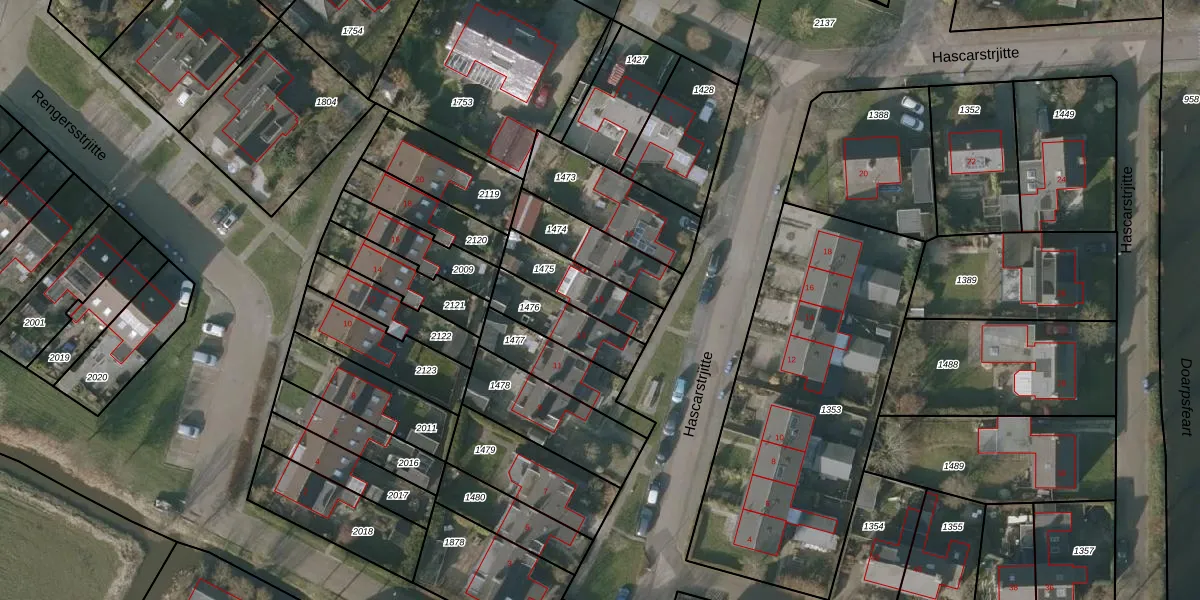 Hascarstrjitte 15 is gelegen op kadastraal perceel SNE00G1475. Deze kadastrale aanduiding is uniek en wordt gebruikt door het Kadaster om eigendomsrechten en andere zakelijke rechten vast te leggen. Het perceel maakt onderdeel uit van de kadastrale gemeente Sneek.