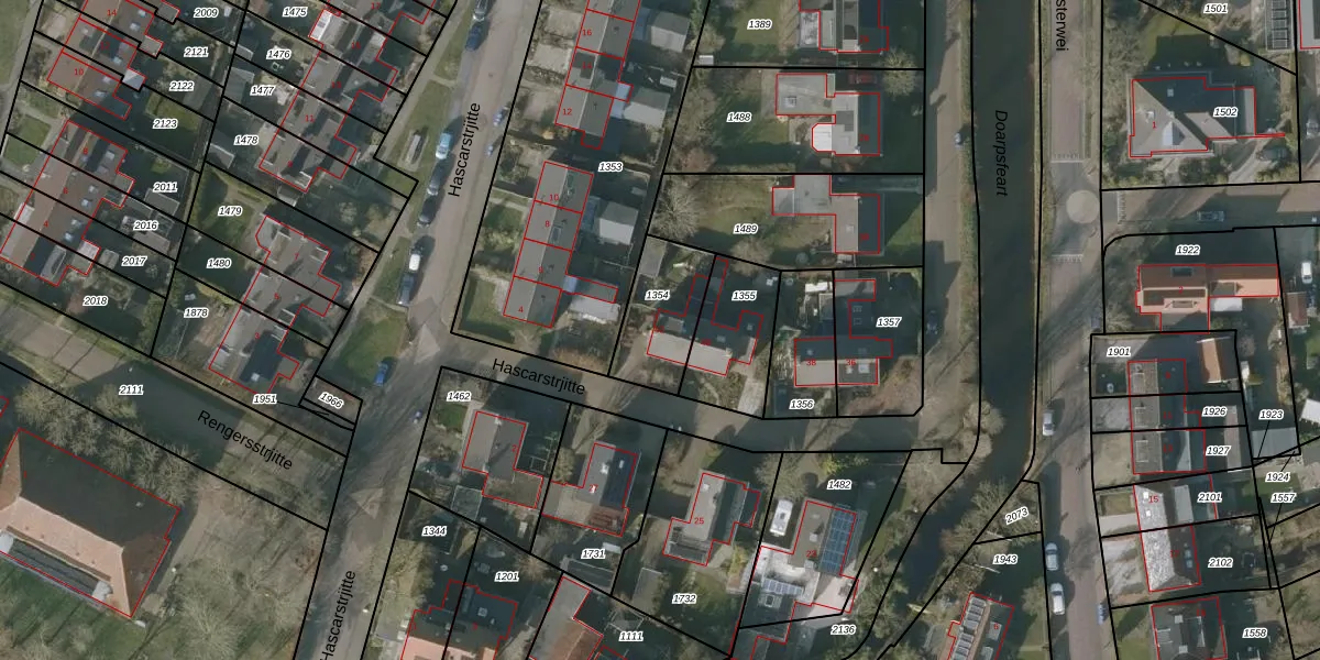 Het perceel waarop Hascarstrjitte 42 staat heeft een oppervlakte van 246 m². Dit is een middelgroot perceel. De perceeloppervlakte wordt geregistreerd door het Kadaster. Gedetailleerde informatie over de maten van dit perceel kunt u vinden in het rapport Kadastrale kaart met maatvoering van Hascarstrjitte 42.