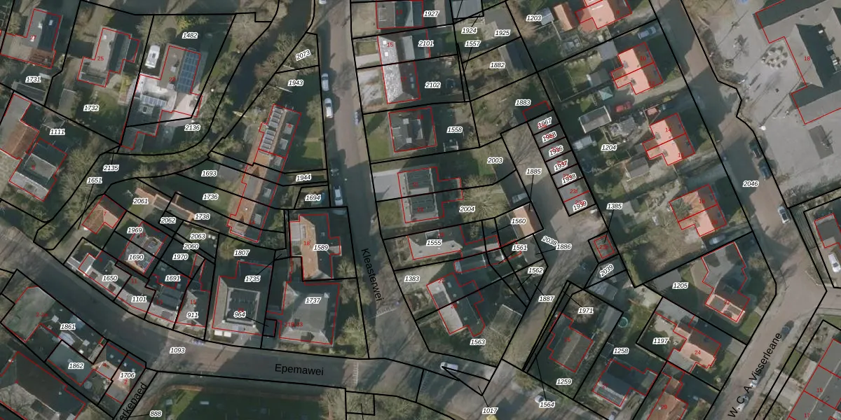 Gebruik de zoekbalk of klik op een perceel voor informatie over de adressen binnen dit perceel.