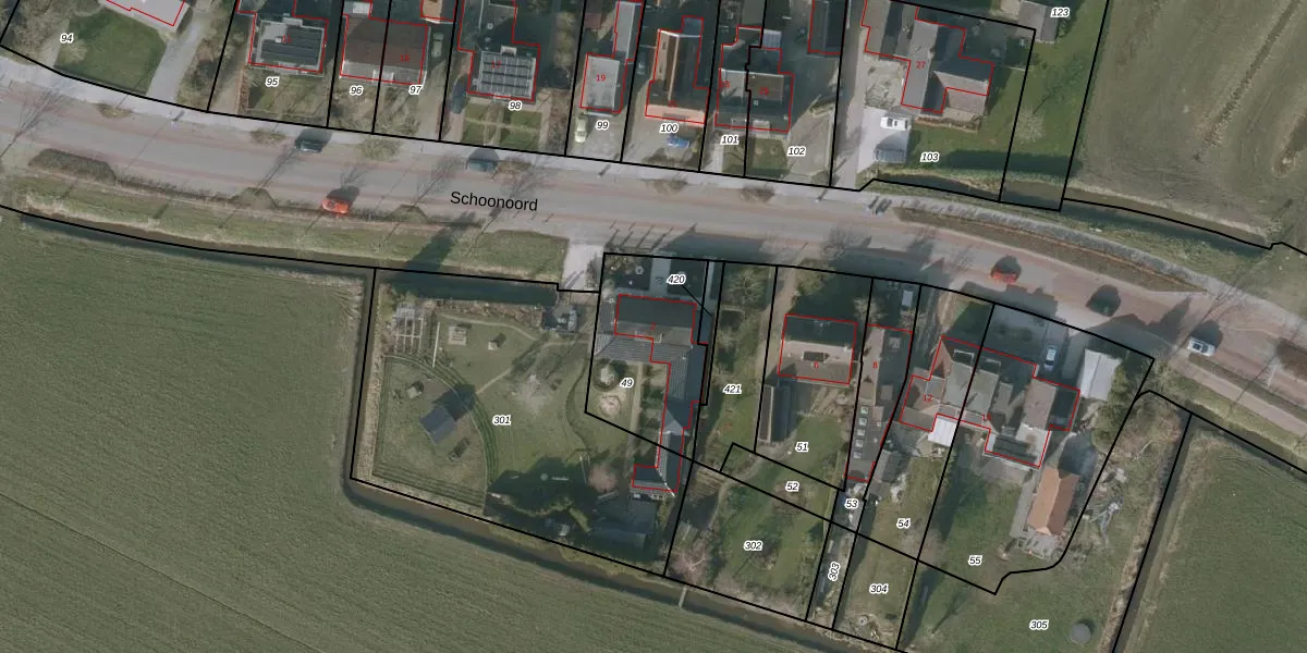 Het perceel waarop Schoonoord 2 staat heeft een oppervlakte van 469 m². Dit is een groot perceel. De perceeloppervlakte wordt geregistreerd door het Kadaster. Gedetailleerde informatie over de maten van dit perceel kunt u vinden in het rapport Kadastrale kaart met maatvoering van Schoonoord 2.
