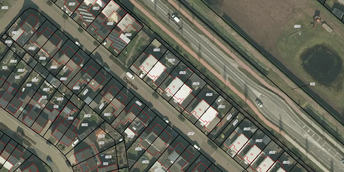 Dopheide 15 is gelegen op kadastraal perceel VRY00M1241. Deze kadastrale aanduiding is uniek en wordt gebruikt door het Kadaster om eigendomsrechten en andere zakelijke rechten vast te leggen. Het perceel maakt onderdeel uit van de kadastrale gemeente Venray.