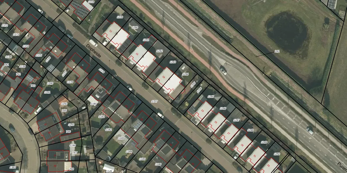 Het perceel waarop Dopheide 21 staat heeft een oppervlakte van 237 m². Dit is een middelgroot perceel. De perceeloppervlakte wordt geregistreerd door het Kadaster. Gedetailleerde informatie over de maten van dit perceel kunt u vinden in het rapport Kadastrale kaart met maatvoering van Dopheide 21.