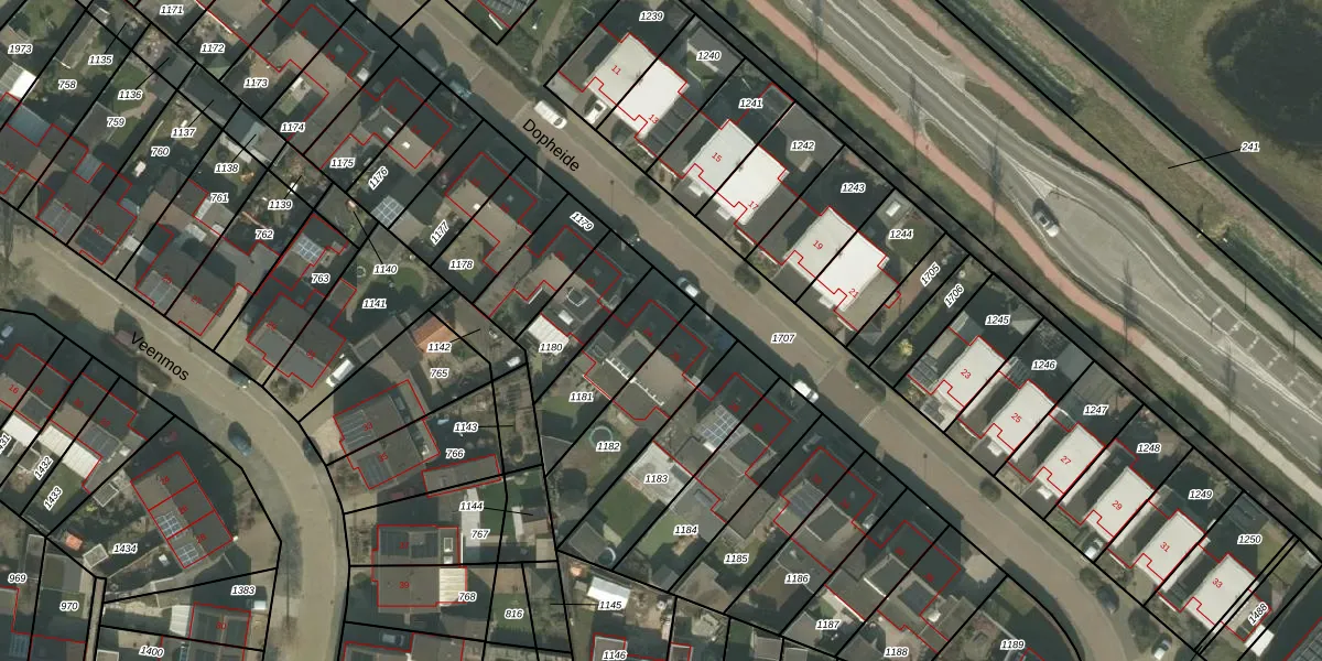 Het perceel waarop Dopheide 24 staat heeft een oppervlakte van 265 m². Dit is een middelgroot perceel. De perceeloppervlakte wordt geregistreerd door het Kadaster. Gedetailleerde informatie over de maten van dit perceel kunt u vinden in het rapport Kadastrale kaart met maatvoering van Dopheide 24.