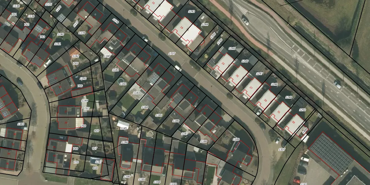Gebruik de zoekbalk of klik op een perceel voor informatie over de adressen binnen dit perceel.