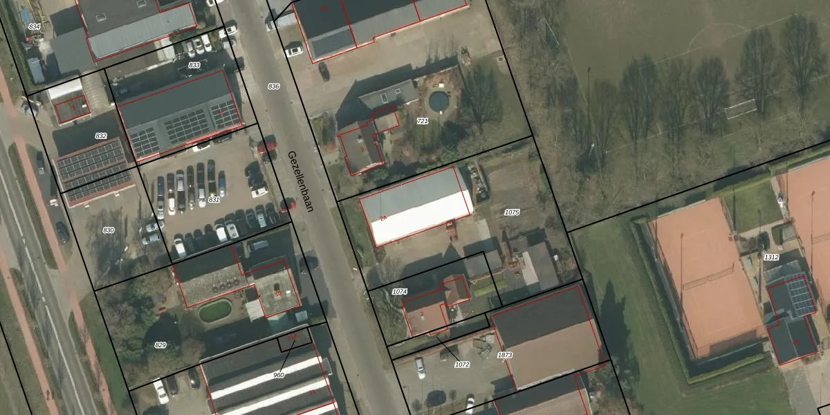 Het perceel waarop Gezellenbaan 2-A staat heeft een oppervlakte van 1430 m². Dit is een zeer groot perceel. De perceeloppervlakte wordt geregistreerd door het Kadaster. Gedetailleerde informatie over de maten van dit perceel kunt u vinden in het rapport Kadastrale kaart met maatvoering van Gezellenbaan 2-A.