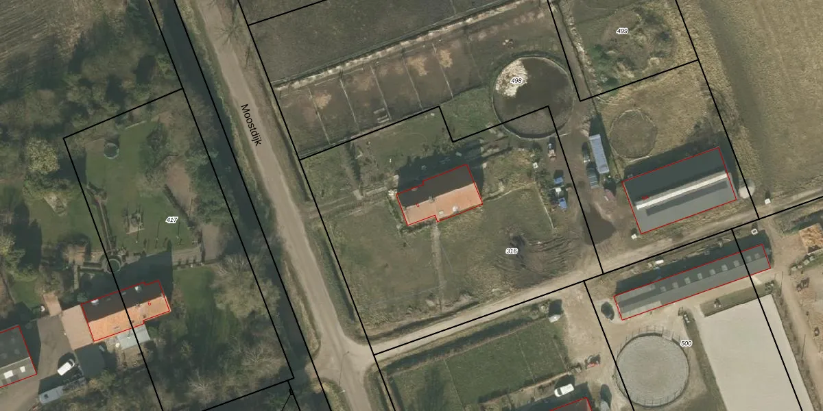 Het perceel waarop Moostdijk 5 staat heeft een oppervlakte van 2860 m². Dit is een zeer groot perceel. De perceeloppervlakte wordt geregistreerd door het Kadaster. Gedetailleerde informatie over de maten van dit perceel kunt u vinden in het rapport Kadastrale kaart met maatvoering van Moostdijk 5.
