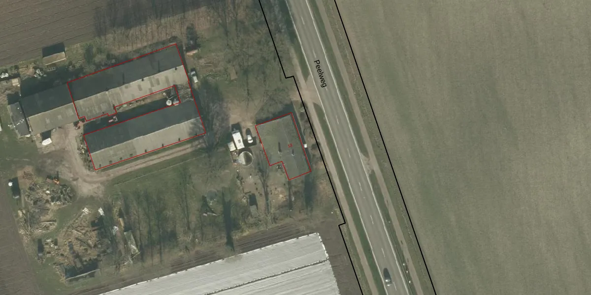 Het perceel waarop Peelweg 13 staat heeft een oppervlakte van 7,3 ha. Dit is een zeer groot perceel. De perceeloppervlakte wordt geregistreerd door het Kadaster. Gedetailleerde informatie over de maten van dit perceel kunt u vinden in het rapport Kadastrale kaart met maatvoering van Peelweg 13.