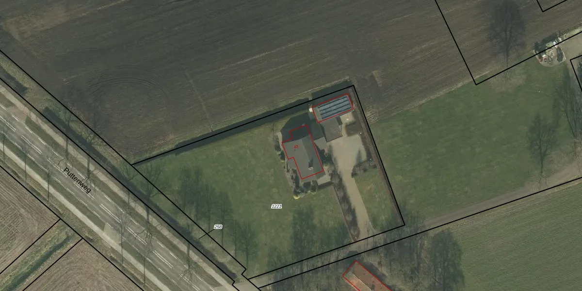 Puttenweg 43 is gelegen op kadastraal perceel VRY00M1221. Deze kadastrale aanduiding is uniek en wordt gebruikt door het Kadaster om eigendomsrechten en andere zakelijke rechten vast te leggen. Het perceel maakt onderdeel uit van de kadastrale gemeente Venray.