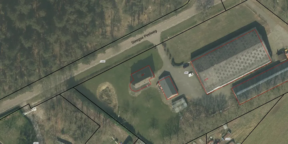 Het perceel waarop Steegse Peelweg 147 staat heeft een oppervlakte van 9900 m². Dit is een zeer groot perceel. De perceeloppervlakte wordt geregistreerd door het Kadaster. Gedetailleerde informatie over de maten van dit perceel kunt u vinden in het rapport Kadastrale kaart met maatvoering van Steegse Peelweg 147.