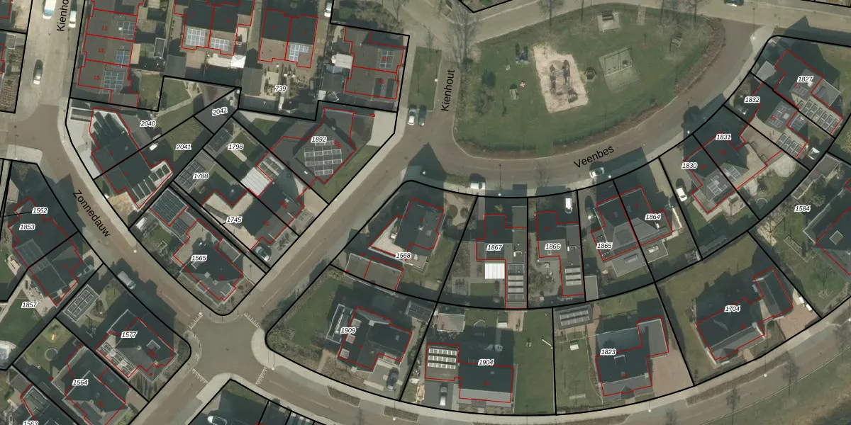 Het perceel waarop Veenbes 1 staat heeft een oppervlakte van 575 m². Dit is een groot perceel. De perceeloppervlakte wordt geregistreerd door het Kadaster. Gedetailleerde informatie over de maten van dit perceel kunt u vinden in het rapport Kadastrale kaart met maatvoering van Veenbes 1.