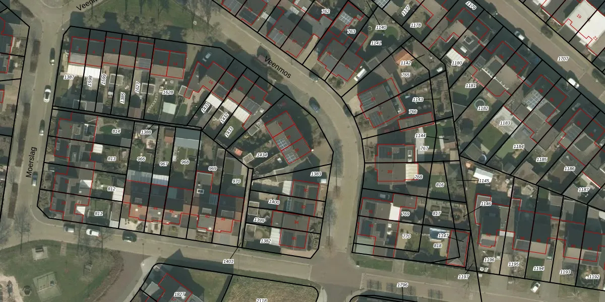 Het perceel waarop Veenmos 28 staat heeft een oppervlakte van 580 m². Dit is een groot perceel. De perceeloppervlakte wordt geregistreerd door het Kadaster. Gedetailleerde informatie over de maten van dit perceel kunt u vinden in het rapport Kadastrale kaart met maatvoering van Veenmos 28.