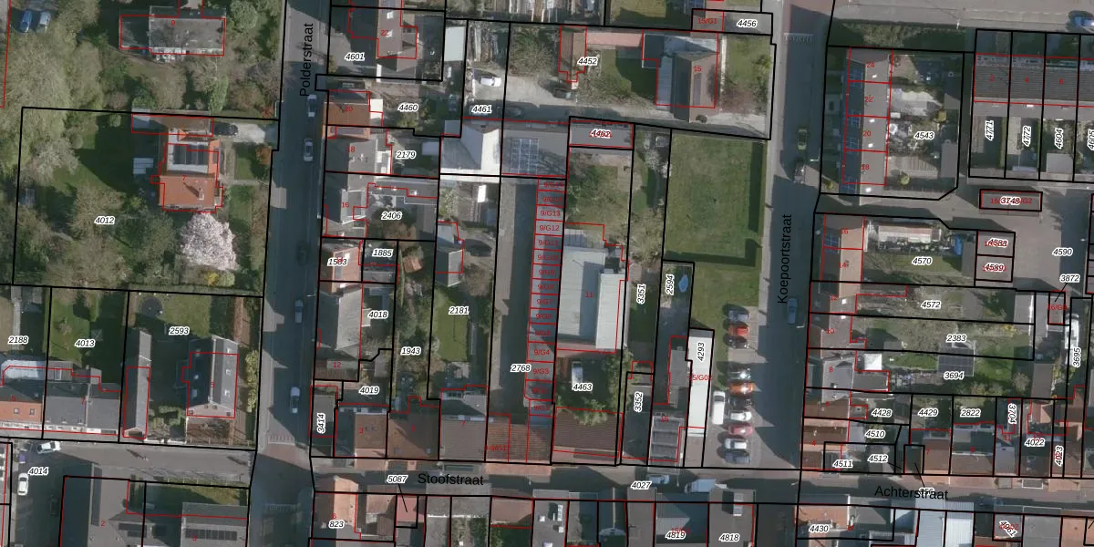 Stoofstraat 9-G9 is gelegen op kadastraal perceel ZSG00F2768. Deze kadastrale aanduiding is uniek en wordt gebruikt door het Kadaster om eigendomsrechten en andere zakelijke rechten vast te leggen. Het perceel maakt onderdeel uit van de kadastrale gemeente Zaamslag.