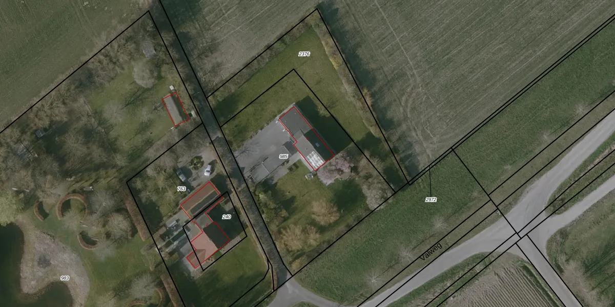 Valweg 4 is gelegen op kadastraal perceel TNZ00T985. Deze kadastrale aanduiding is uniek en wordt gebruikt door het Kadaster om eigendomsrechten en andere zakelijke rechten vast te leggen. Het perceel maakt onderdeel uit van de kadastrale gemeente Terneuzen.