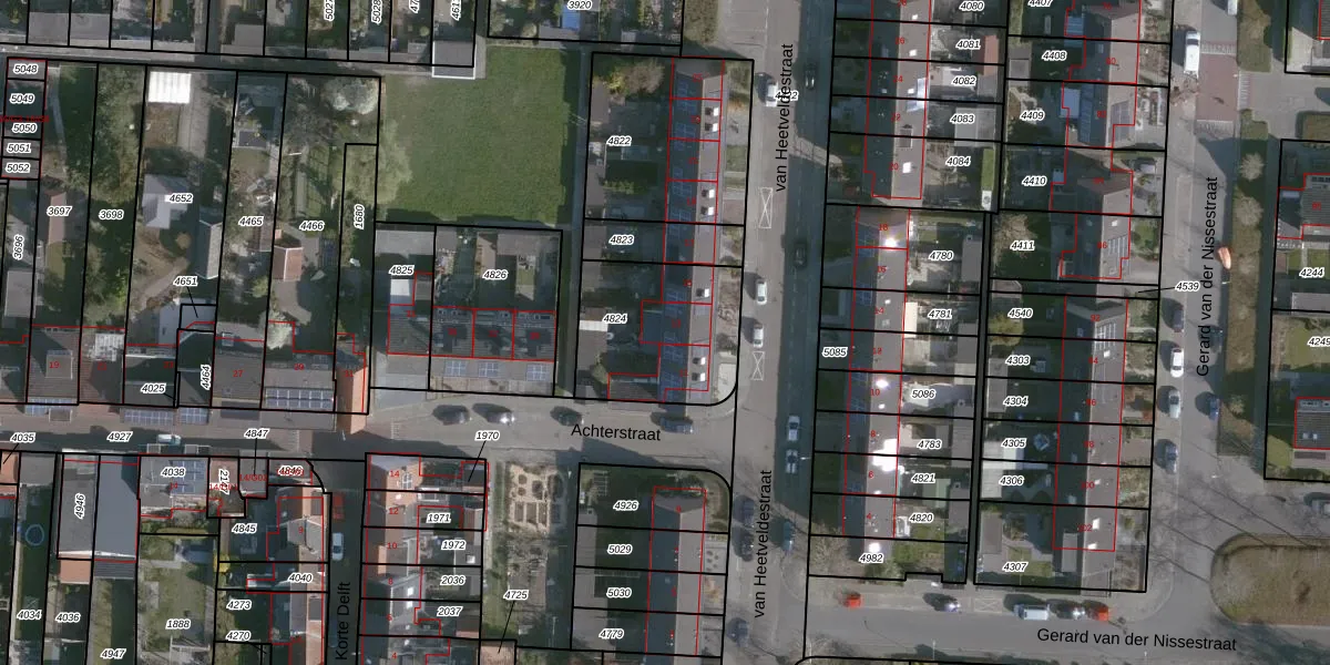 Het perceel waarop van Heetveldestraat 13 staat heeft een oppervlakte van 498 m². Dit is een groot perceel. De perceeloppervlakte wordt geregistreerd door het Kadaster. Gedetailleerde informatie over de maten van dit perceel kunt u vinden in het rapport Kadastrale kaart met maatvoering van van Heetveldestraat 13.