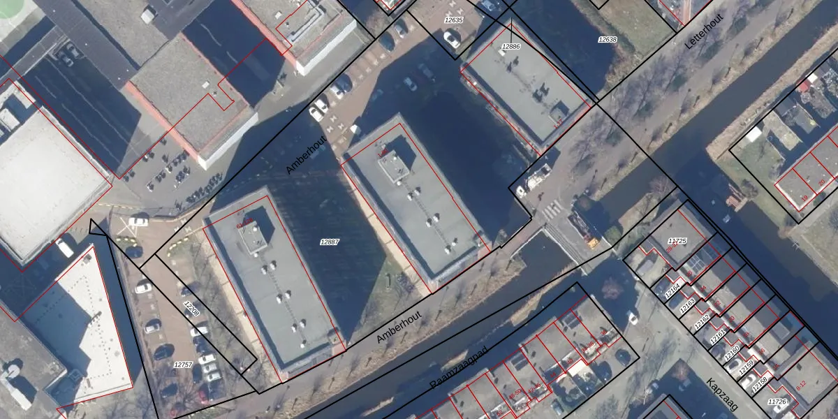 Het perceel waarop Amberhout 13 staat heeft een oppervlakte van 4790 m². Dit is een zeer groot perceel. De perceeloppervlakte wordt geregistreerd door het Kadaster. Gedetailleerde informatie over de maten van dit perceel kunt u vinden in het rapport Kadastrale kaart met maatvoering van Amberhout 13.