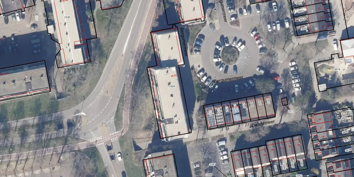 Bergumermeer 30-A is gelegen op kadastraal perceel ZDM01B1564. Deze kadastrale aanduiding is uniek en wordt gebruikt door het Kadaster om eigendomsrechten en andere zakelijke rechten vast te leggen. Het perceel maakt onderdeel uit van de kadastrale gemeente Zaandam.
