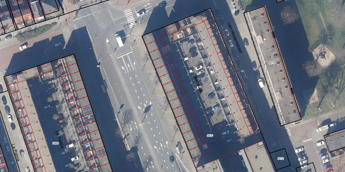 Het perceel waarop Bermuda 14 staat heeft een oppervlakte van 5553 m². Dit is een zeer groot perceel. De perceeloppervlakte wordt geregistreerd door het Kadaster. Gedetailleerde informatie over de maten van dit perceel kunt u vinden in het rapport Kadastrale kaart met maatvoering van Bermuda 14.