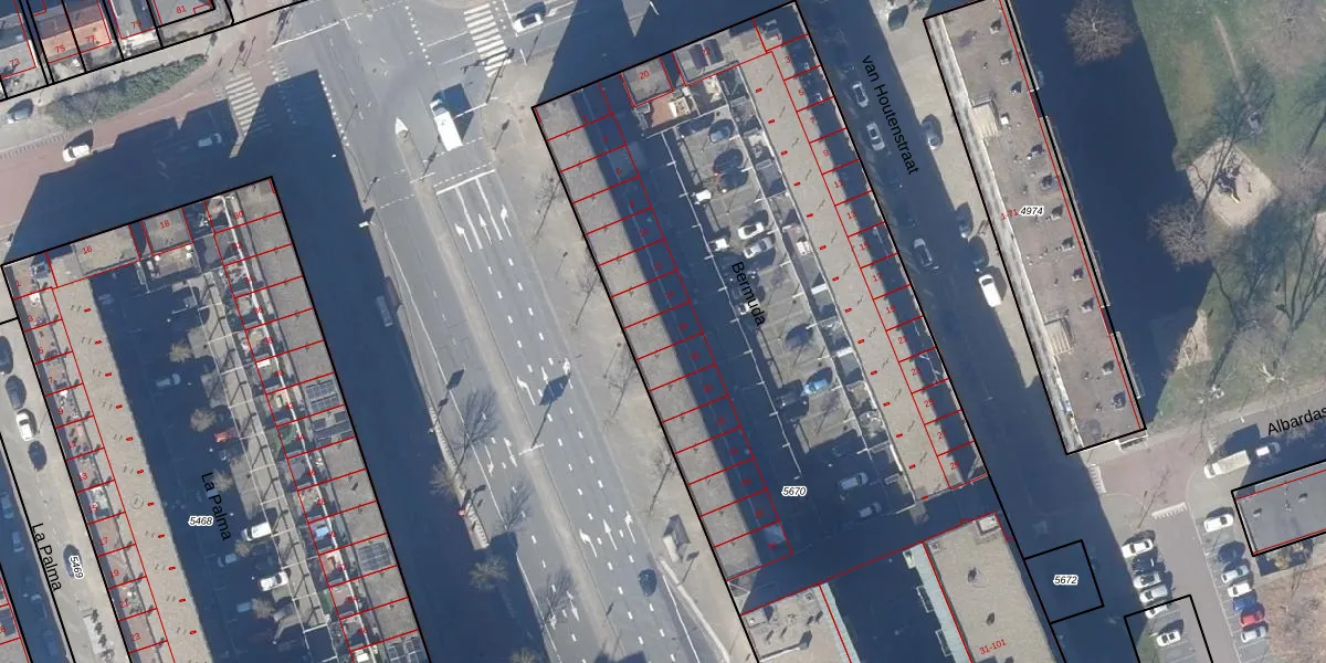 Het perceel waarop Bermuda 16 staat heeft een oppervlakte van 5553 m². Dit is een zeer groot perceel. De perceeloppervlakte wordt geregistreerd door het Kadaster. Gedetailleerde informatie over de maten van dit perceel kunt u vinden in het rapport Kadastrale kaart met maatvoering van Bermuda 16.